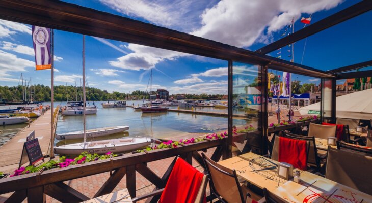 Tawerna z pięknym widokiem w samym sercu wioski żeglarskiej, łódeczki lśnią w słońcu i uroczo kołyszą. Polecam lokalną sielawę, jako zakąska do piwka smażone na głębokim oleju chrupiące małe stynki. (Tawerna Pod Złamanym Pagajem)
