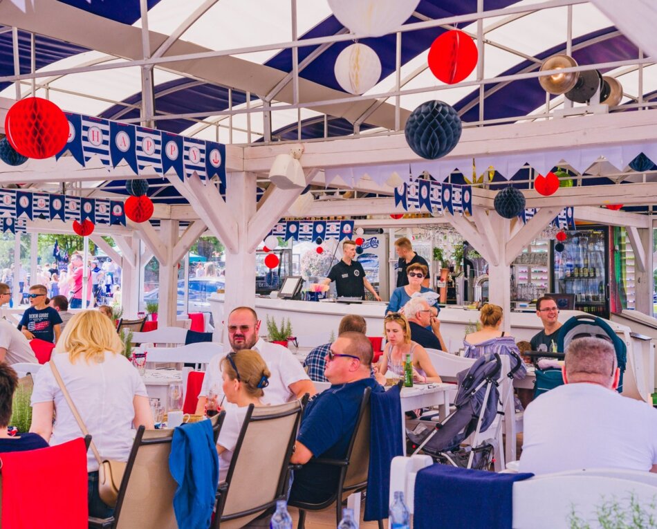 Letni bar w śródziemnomorskim klimacie zachęca do wejścia i delektowania się zarówno pysznym jedzeniem jak i niezapomnianymi widokami.